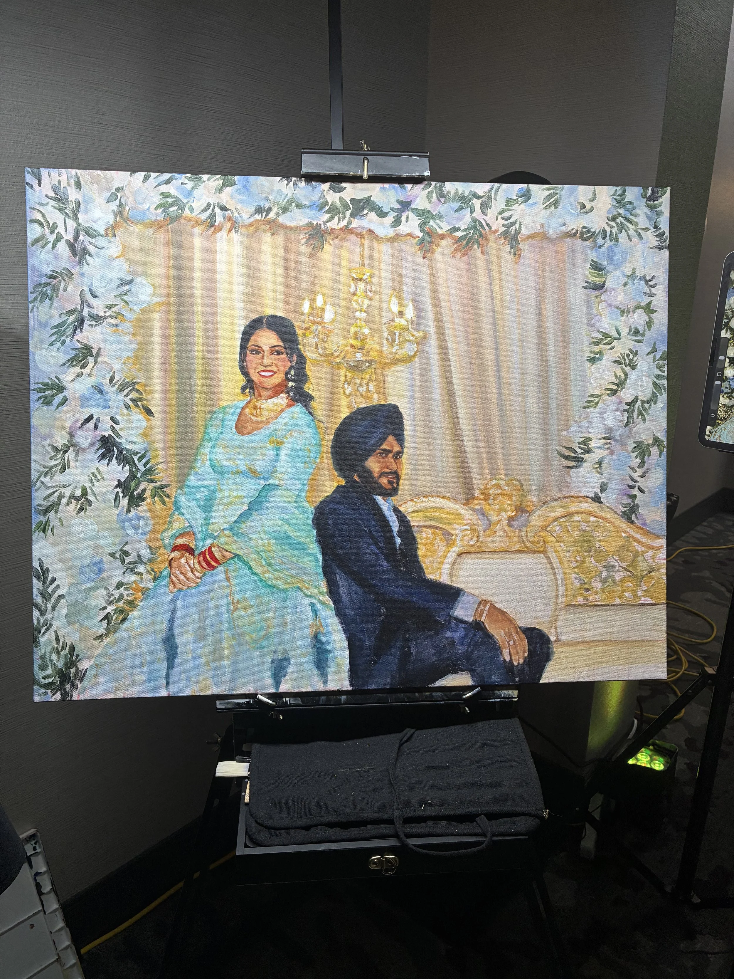 I painted my first wedding live with Ben and Katya in Chicago, using a photo reference they shot of the first look. Despite some initial hiccups and troubleshooting (like forgetting to bring lights), it turned out to be an amazing experience.